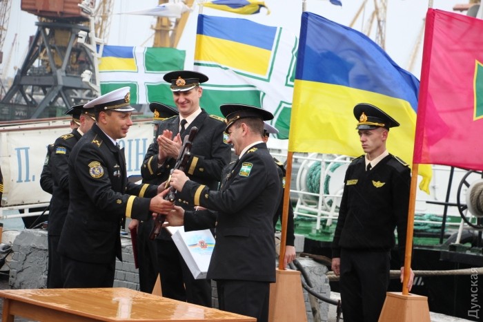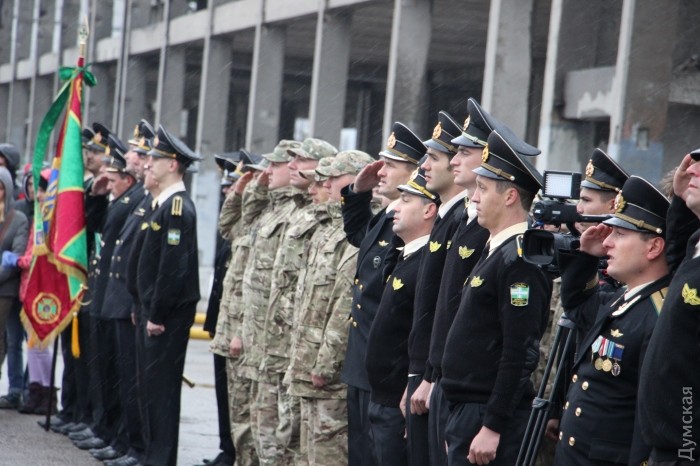 Как сообщила пресс-служба отряда, непосредственно перед торжественным митингом в пункт базирования прибыли тактические корабельно-катерные группы, которые в течение недели несли службу по охране морских рубежей. После рапорта командиров о выполнении приказа впервые перед личным составом части знаменная группа пронесла новое Боевое знамя, которое вручалось каждому военному формированию на торжественном параде в День независимости Украины.