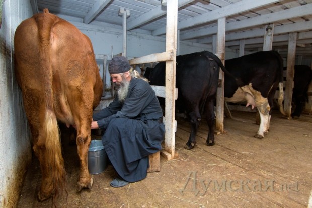 Монахи сами доят коров, кормят их и даже принимают у жвачных роды, правда, под профессиональным руководством ветеринара. Из собранного молока две монахини Зоя и Фатинья, живущие в монастыре почти полвека, делают творог, сметану, сливки и даже масло для пасхальных куличей.