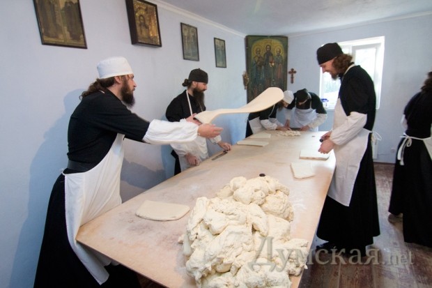 Рецепт очень прост: дрожи, соль, святая вода и молитва. За одну выпечку получается 2 тысячи 300 просфор, которые расходятся по всей православной Одессе. Эта работа в монашеской среде считается относительно легкой.