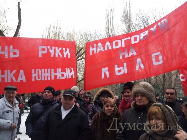 Около сотни предпринимателей митинговали у здания налоговой администрации Киевского района, выступая против наложения ареста на имущество рынка «Южный».