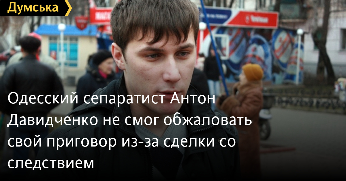 Одесский сепаратист Антон Давидченко, который сейчас находится в оккупированном Крыму, не смог обжаловать приговор Шевченковского районного суда Киева, признавшего его виновным в посягательстве на территориальную целостность Украины.
