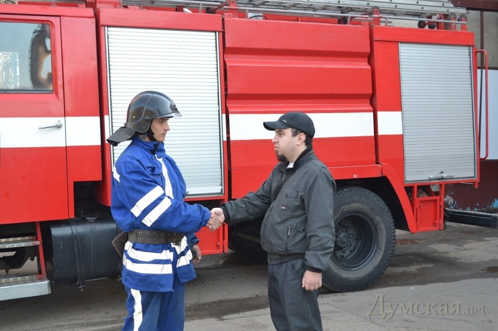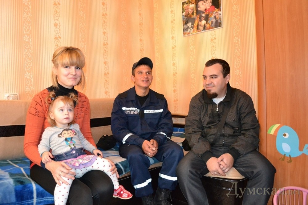 Сотрудник пожарно-спасательного подразделения №5 Суворовского района Одессы Владимир Галькун вынес из задымленной квартиры полуторагодовалую Машу, отдав девочке свою маску для защиты дыхательных путей. 22 октября родители Маши встретились с Владимиром Галькуном и поблагодарили его за спасение дочки. Как сообщила пресс-служба регионального управления ГСЧС в Одесской области, сообщение о пожаре в жилом доме по улице 40-летия Обороны Одессы поступило на спецлинию «101»в 19:16 18 октября. Причиной возгорания стало короткое замыкание в электрощитовой. Мать Маши Ксения Тронча рассказала, что в то время, когда начался пожар, она была дома с дочерью. Женщина находилась на кухне, когда услышала громкие хлопки, но не придала этому значения – рядом с домом расположены развлекательные заведения и посторонний шум здесь не редкость. Когда в квартире начал мигать свет, Ксения открыла дверь, чтобы выяснить, что происходит, и увидела дым. «Я сразу взяла ребенка, по дороге схватила документы и теплые вещи, закрыла дверь в комнату и мы побежали на балкон. Дочка испугалась. Свет еще несколько минут мигал, а потом погас. Сильного дыма я не видела, но был сильный запах и першило в горле. Я взяла ребенка на руки, она успокоилась, но потом начала закрывать глаза и засыпать и я поняла, что ей плохо», — рассказала мать. На балконе женщину с ребенком нашел спасатель Владимир Галькун. «Прозвучала тревога в части, быстро собрались, выехали. Когда приехали, увидели задымление в подвальном помещении и в подъезде. Мы сразу пошли проверять квартиры, нет ли там людей, — рассказал Владимир. – Когда зашел в квартиру на третьем этаже, там было очень много дыма, ничего не было видно. Разглядел на балконе женщину с маленьким ребенком. Девочка была в окне – из-за дыма ей не хватало воздуха. Я подошел к ним, сказал, что мы пожарные, что все будет хорошо, мы их спасем. Потом взял девочку, снял с себя маску, надел ее на девочку». Спасатель вынес на улицу ребенка, а потом вернулся за женщиной. Владимир Галькун недавно работает в пожарно-спасательном подразделении. Ему впервые довелось спасать людей на пожаре. В этом же подразделении уже несколько лет работает старший брат Владимира. СМЕРТЬ РОСІЙСЬКИМ ОКУПАНТАМ! Помітили помилку? Виділяйте слова з помилкою та натискайте control-enter |