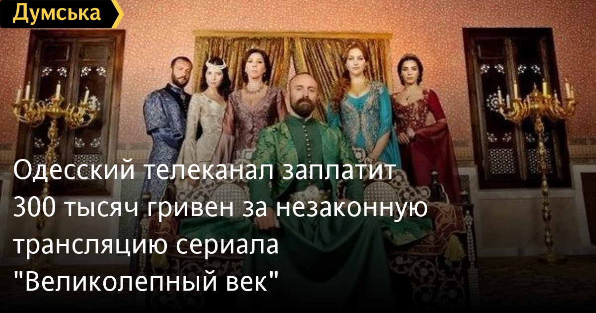Одесский телеканал заплатит 300 тысяч гривен за незаконную трансляцию сериала «Великолепный век»Хозяйственный суд Одесской области обязал «Первый городской» телеканал возместить убытки за нарушение авторских прав. Как сообщила «Телекритика», одесским телевизионщикам придется заплатить 300 тысяч гривен за незаконную трансляцию пяти эпизодов сереала «Великолепный век» компании Спинтрекс Холдингз ЛТД, которая является собственником прав на турецкие ТВ-продукты в Украине. В ходе судебного разбирательства стороны заключили мировое соглашение, так что обжаловать решение «Первый городской» не будет. СМЕРТЬ РОССИЙСКИМ ОККУПАНТАМ! Заметили ошибку? Выделяйте слова с ошибкой и нажимайте control-enter |