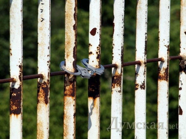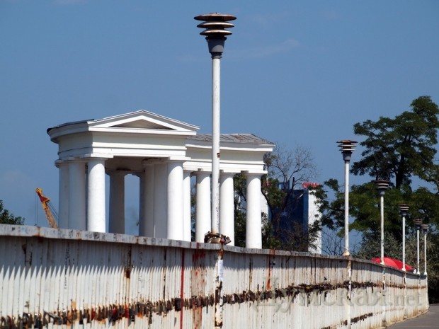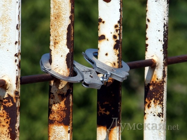 Знаменитый Тещин мост между Приморским бульваром и бульваром Жванецкого — «арестован»! Арестовали его очередные влюбленные, решившие закрепить память о своих чувствах не простым висячим замком, а наручниками.