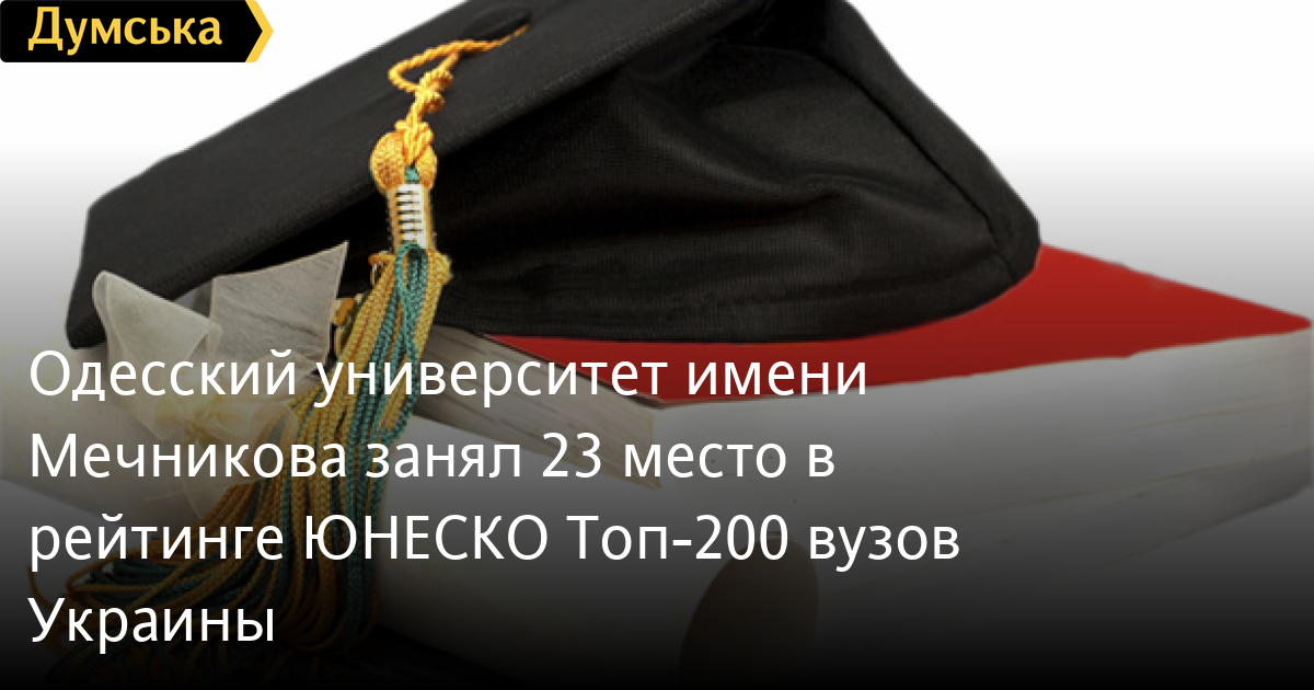 Одесский национальный университет им. И.И. Мечникова занял 23 место в рейтинге университетов Украины III и IV уровня аккредитации («Топ-200 Украина»). В нынешнем году это – самый высокий показатель среди вузов Одессы. 31-ю позицию занимает Национальный медицинский университет, 35-ю – Политехнический. Экономический университет и Академия пищевых технологий оказались, соответственно, на 37-м и 38-м местах. Юридическая академия лишь 44 место, Южноукраинский педагогический университет — 51-е, Морской университет («водный») – 62-е. Академия связи на 79 месте, холода – на 98-м.