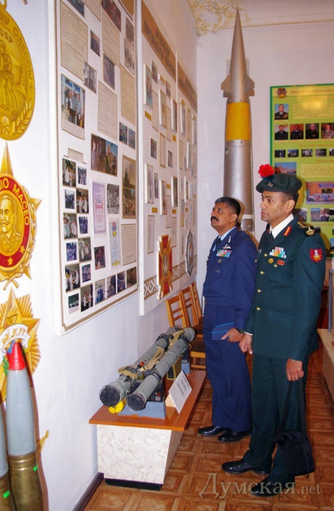 Одесский гарнизон с дружественным визитом посетила делегация слушателей высшего общевойскового командного курса Военного колледжа Вооруженных сил Республики Индия. Как сообщила пресс-служба Минобороны Украины, в состав делегации вошло более двадцати офицеров во главе с генерал-майором Винодом Кумар Пилаи. Гости посетили Воздушное командование «Юг», пообщались с руководством и осмотрели экспозиции музея ВВК «Юг». Затем делегация посетила Военную академию и обсудили с ее руководством особенности подготовки офицерских кадров для украинской армии и организацию учебного процесса в военном вузе. «Мы поражены тем, что в стенах одного учебного заведения готовятся как офицеры для боевых частей, так и специалисты по логистике. Этот опыт подготовки специалистов для разных видов и родов войск является достаточно интересным для нас и нуждается в более детальном изучении», – отметил генерал-майор Винод Кумар Пилаи. В Военной академии индийские офицеры посетили кафедры тактики, воздушно-десантной подготовки, осмотрели Георгиевский зал, присутствовали на репетиции военного оркестра и посетили музей учебного заведения. «Мы поражены всем увиденным, системой подготовки курсантов, инфраструктурой и материальной базой. Это учебное заведение можно назвать одним из лучших среди тех, в которых мне пришлось побывать», – отметил, подводя итоги визита, руководитель индийской делегации. На память о встрече украинские и индийские военные обменялись памятными подарками и сувенирами. СМЕРТЬ РОСІЙСЬКИМ ОКУПАНТАМ! Помітили помилку? Виділяйте слова з помилкою та натискайте control-enter |