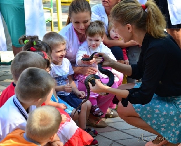 9 сентября сотрудники Одесского зоопарка приехали в гости к воспитанникам Дома ребенка «Солнышко», в котором от рождения и до школьного возраста воспитываются дети-сироты с врожденными патологиями в психическом и физическом развитии.