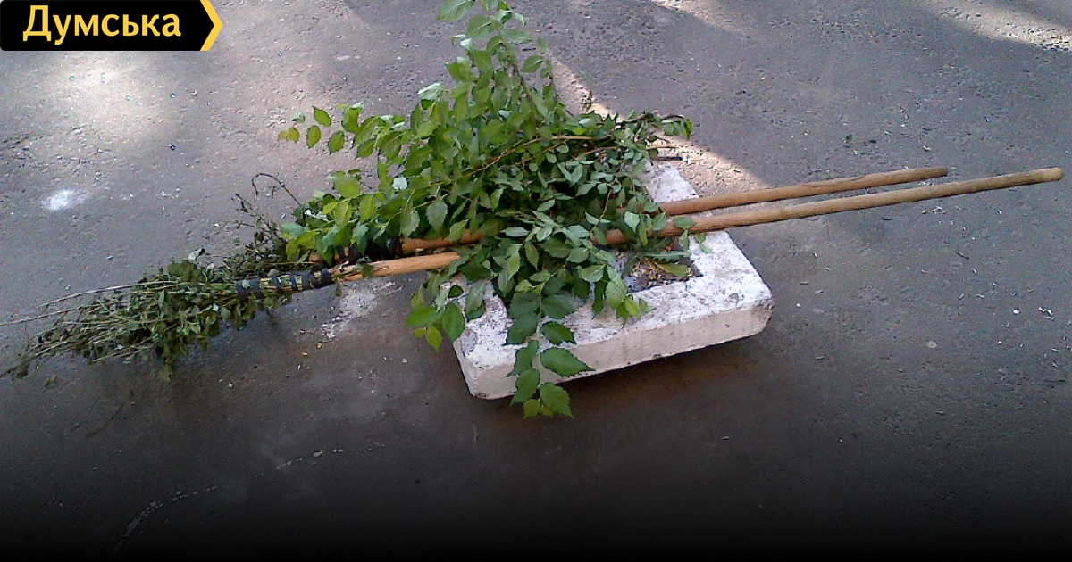 Одесские жилкоммунсервисы ввиду отсутствия денег перестали выдавать дворникам даже самое необходимое – лопаты, метлы, краску и т.д. Коммунальщики выкручиваются, как могут, в частности, делают веники из зеленых веток.