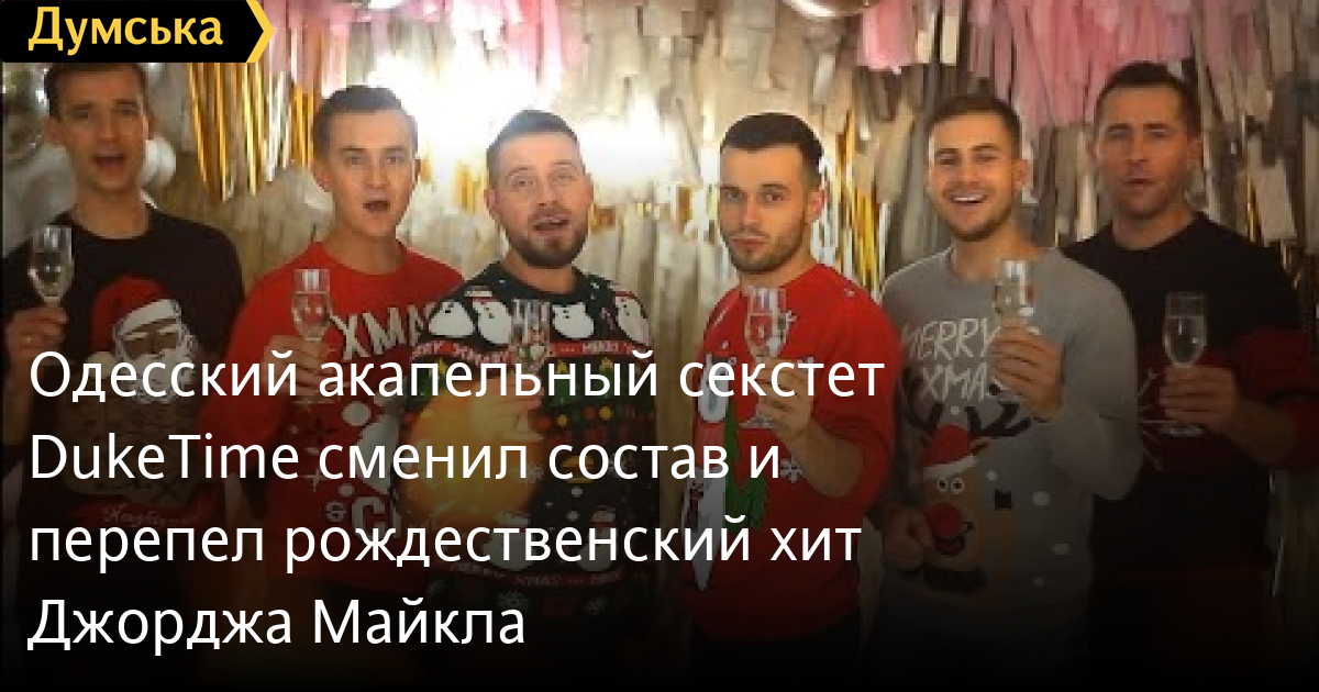Одесский акапельный секстет DukeTime сменил состав и перепел рождественский хит Джорджа МайклаМужской акапельный секстет DukeTime (Дюк-Тайм), который образовался в августе 2004 года в Одессе, кардинально изменил состав участников. Большинство вокалистов покинули группу — из семи музыкантов, которые были в коллективе с самого начала, остались баритон Григорий Терехов и бас Гарик Горяну. «Не было одной какой-то причины, просто каждый сделал свой выбор, и у большинства этот выбор не был связан с продолжением творческой деятельности в DukeTime, — говорит Гарик Горяну. — Сейчас наш состав значительно «помолодел» — младшему участнику всего 22 года». На днях вышел первый клип, снятый с обновленным составом DukeTime — это кавер-попурри по мотивам известной песни Last Christmas. СМЕРТЬ РОССИЙСКИМ ОККУПАНТАМ! Заметили ошибку? Выделяйте слова с ошибкой и нажимайте control-enter |