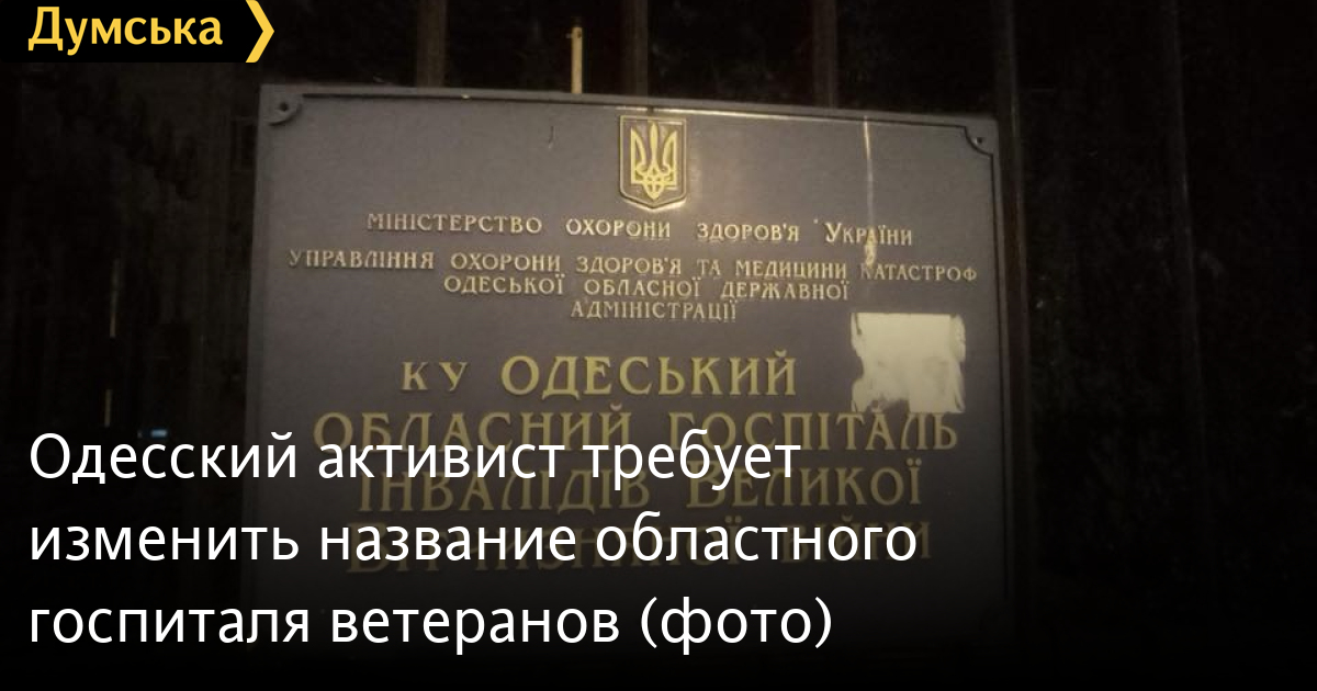 Активист Демьян Ганул требует привести в соответствие с действующим законодательством название Одесского областного госпиталя инвалидов Великой отечественной войны.