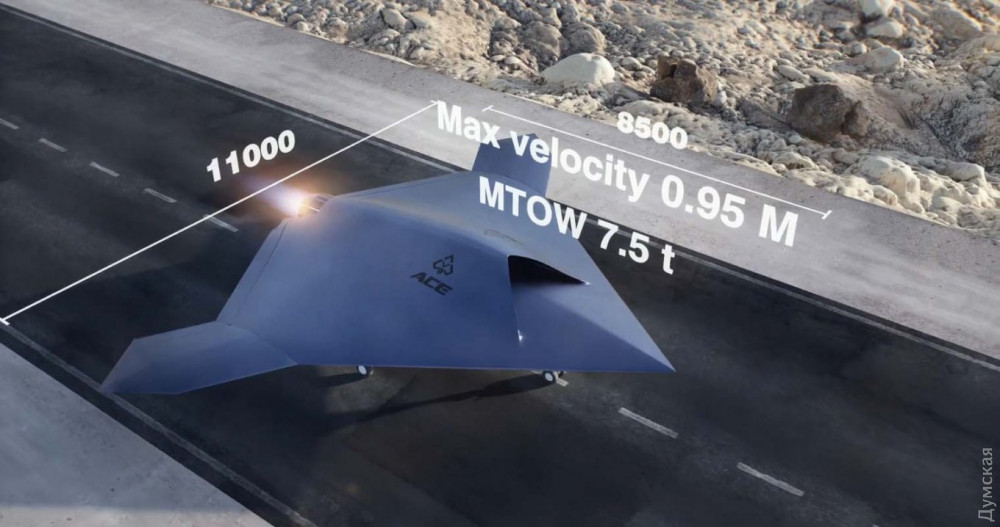 Длина ACE ONE – 11 метров, ширина – 8 метров, грузоподьемность – 7,5 тонн. Беспилотник может нести до тонны полезной нагрузки и использовать разнообразное вооружение – ракеты воздух-воздух, воздух-поверхность, а также бомбы.