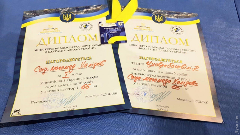 Золото чемпионата Украины по дзюдо среди кадетов до 18 лет завоевал воспитанник одесской ДЮСШ № 15 Саид-Магомед Халидов.