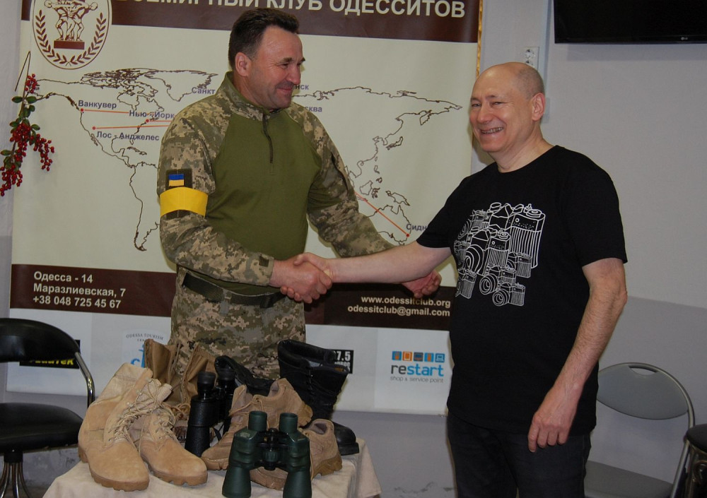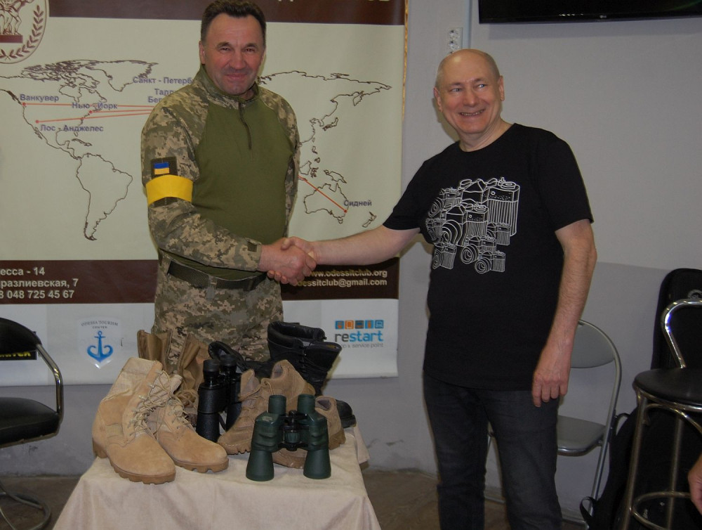 Напомним, любую работу с выставки можно было приобрести за символическую сумму в сто гривен. Подведены итоги: продано более 140 работ, выручено 12 тысяч гривен, которые потрачены на приобретение биноклей и обуви для бойцов территориальной обороны Одессы. А обувь в полевых условиях – на вес золота, с благодарностью отмечает заместитель командира Одесской бригады территориальной обороны полковник Алексей Рудаков.