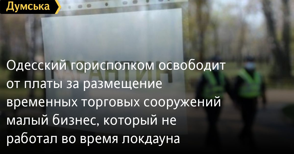 Одесский горисполком освободит от платы за размещение временных торговых сооружений малый бизнес, который не работал во время локдаунаОсвободить от платы за размещение временных сооружений и элементов уличной торговли малый бизнес, который закрылся во время зимнего локдауна, планирует исполком Одесского городского совета. Соответствующий проект решения комитет рассмотрит на ближайшем заседании, передает корреспондент «Думской». Льготный режим затронет лишь период локдауна (то есть речь идет только о плате за январь 2020-го) и не будет распространяться на субъекты хозяйствования, которые не подпадают под карантинное постановление Кабмина, принятое 9 декабря прошлого года. Это предприятия и ФЛП, которые занимаются торговлей продуктами питания, лекарственными средствами, изделиями медицинского назначения, средствами гигиены, средствами связи, ветеринарными препаратами, кормами, семенами, средствами защиты растений, топливом; СТО, парикмахерские и так далее. Напомним, локдаун, или «карантин зимних каникул», начался в Украине 8 января и продлится до 24-го. После этого правительство намерено вернуть так называемый «адаптивный карантин», который действовал до 11 ноября 2020 года. Тогда страна была разделена на «красную», «оранжевую», «желтую» и «зеленую» зоны, где действовали разные уровни ограничений. Регионы попадали в соответствующую зону по показателям заболеваемости коронавирусом. СМЕРТЬ РОСІЙСЬКИМ ОКУПАНТАМ! Помітили помилку? Виділяйте слова з помилкою та натискайте control-enter Новини по цій темі: 4 березня 2023: "Вакцини-довгожителі", або Як щеплення проти COVID-19 перетворилися в Україні на небезпечний ритуал 27 січня 2023: МОЗ зобов`язали опублікувати договори на закупівлю вакцин проти COVID-19: апеляційний суд задовольнив позов журналіста "Думської" 11 січня 2023: За тиждень в Одесі зафіксовано 159 випадків ковіду 4 січня 2023: За тиждень в Одесі зареєстровано 113 випадків ковіду |
