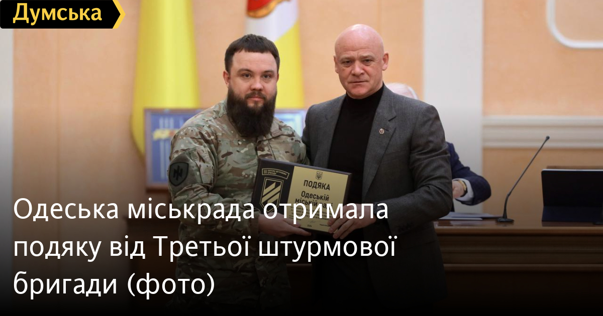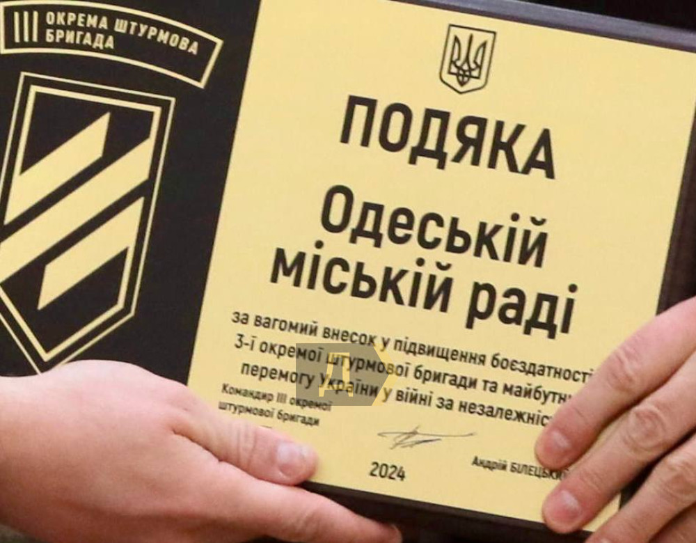 Депутати Одеської міськради отримали знак подяки від Третьої штурмової бригади за підтримку боєздатності з'єднання.