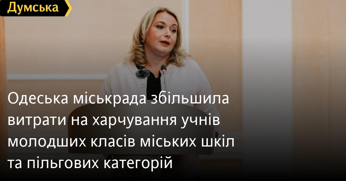 Одеська міськрада збільшила витрати на харчування учнів молодших класів міських шкіл та пільгових категорійВитрати на харчування учнів молодших класів міських шкіл та пільгового контингенту школярів збільшила Одеська міськрада. Таке рішення депутати ухвалили на сьогоднішній сесії зборів, повідомляє кореспондент «Думської». Наразі місто витрачає на харчування одного молодшокласника 23 грн на день. З 1 листопада вартість безкоштовного сніданку зросте до 43 грн. 20 копійок. Вартість харчування одного пільговика збільшиться із 30 до 50 грн. Раніше директор муніципального департаменту освіти Олена Буйневич пояснила «Думській», що необхідність збільшення видатків пов'язана із зростанням цін на продукти. «За 23,50 грн дати затверджене меню неможливо, — зазначила вона. — Ми мали три варіанти: відмовитися від харчування за рахунок міста, прибрати з меню сніданок як такий і дати випічку з напоєм (це порушує норми) або залишити меню, але підвищити вартість. З урахуванням ситуації вирішили продовжити харчування цього року за рахунок бюджету міста». За словами Олени Буйневич, зараз у школах Одеси займаються 3000 школярів зі 100 тисяч (дані мирного часу). Половина з них – молодшекласники. Помітили помилку? Виділяйте слова з помилкою та натискайте control-enter