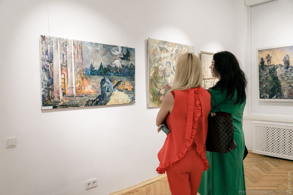 На картинах – події Майдану у Києві, вуличні акції в Одесі, воєнні дії під час АТО та вже повномасштабної війни.