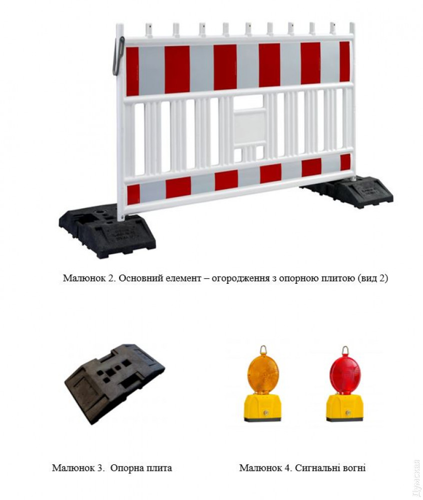 Вокруг раскопок на тротуарах и проезжей части предлагают ставить красно-белые пластмассовые или металлические заборы на опорных плитах. Длинна конструкции – 2 метра, высота – 1 метр. Для лучшей заметности на секции предлагают устанавливать красные и желтые сигнальные огни.
