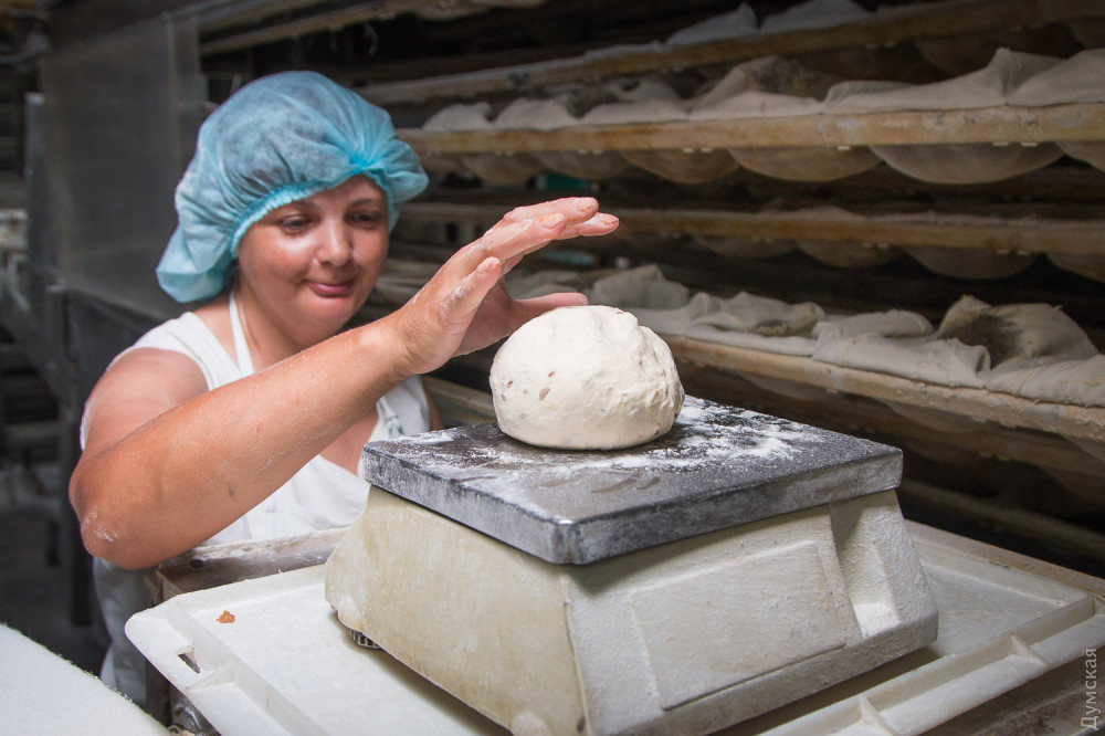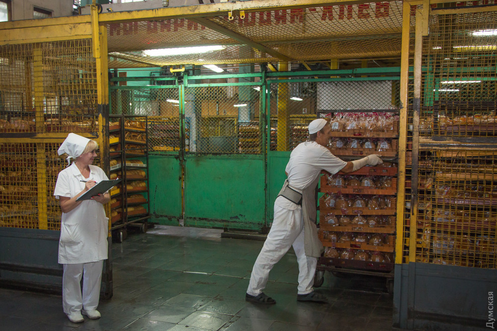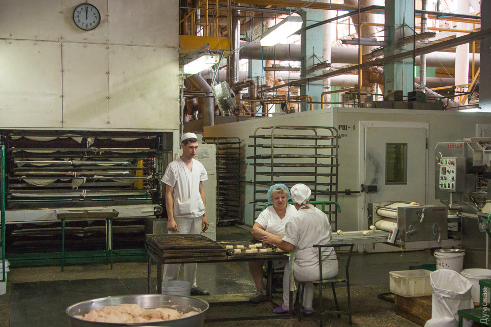 Перчаток там нет ни у кого, а вот в белых фартуках, там таки ходят все, я дважды работал и дважды уходил, знаю, что говорю, правда работал не на производстве, а в сбыте, и на втором, а не четвёртом, но скажу честно, что все там не так « радужно» а на оборот, « донецкие» после того как купили его, развалили полностью, на счёт потребности, то цифры завышены в два раза, больше 180 тонн, никогда не пёк, разве что когда паски и калачи, но в это время, перестают выпекать большую часть сдобы, хлеб уже не тот, что при Касьянове, технологию поменяли, для удешевления, никто из руководства хлеб этот не едят)