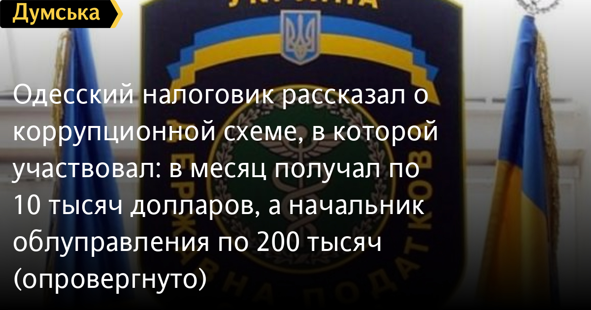 Начальник управления по вопросам выявления и обработки налоговых рисков главного управления Государственной налоговой службы в Одесской области Дмитрий Анголюк рассказал правоохранителям о коррупционных схемах в ведомстве, в которых он принимал непосредственное участие.