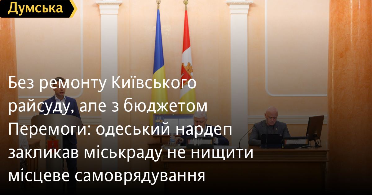Без ремонту Київського райсуду, але з бюджетом Перемоги: одеський нардеп закликав міськраду не нищити місцеве самоврядуванняСумнівні тендери та непріоритетні витрати місцевої влади можуть підірвати саму систему місцевого самоврядування. Про це під час свого виступу в стінах міської ради повідомив народний депутат України від «Євросолідарності» Олексій Гончаренко. За його словами, витрати на ремонт суду, наприклад, є абсолютно зайвими. Через такі ірраціональні витрати Київ може згорнути децентралізацію як таку. «Подумайте, як вони розмірковують: навіщо залишати гроші громадам, якщо вони або суд ремонтуватимуть, або скляні фігури якісь куплять, нехай приходять до нас у Київ і просять. Тому давайте не будемо давати привід для таких думок і покажемо, що Одеса в плані допомоги військовим є прикладом для всієї України», — резюмував нардеп. Крім того, він підкреслив, що виступив проти рішення уряду вилучити з місцевих бюджетів військовий прибутковий податок і додав, що сумнівні бюджетні трансфери на кшталт фінансування судів лише погіршують ситуацію. Він закликав збори своїми рішеннями перетворити міський бюджет на «бюджет Перемоги», зазначивши, що для цього багато чого вже зроблено. «Одеса вже виділила понад мільярд гривень для допомоги нашим військовим, проте в цій великій бочці меду є ложка дьогтю — це виділення коштів на ремонт Київського суду — далеко не найнеобхіднішої в цей важкий час статті витрат. Сьогодні ми повинні думати, перш за все, про наших героїв, прокидатися з думкою про них і лягати з думками про них», — зазначив Олексій Гончаренко. СМЕРТЬ РОСІЙСЬКИМ ОКУПАНТАМ! Помітили помилку? Виділяйте слова з помилкою та натискайте control-enter |