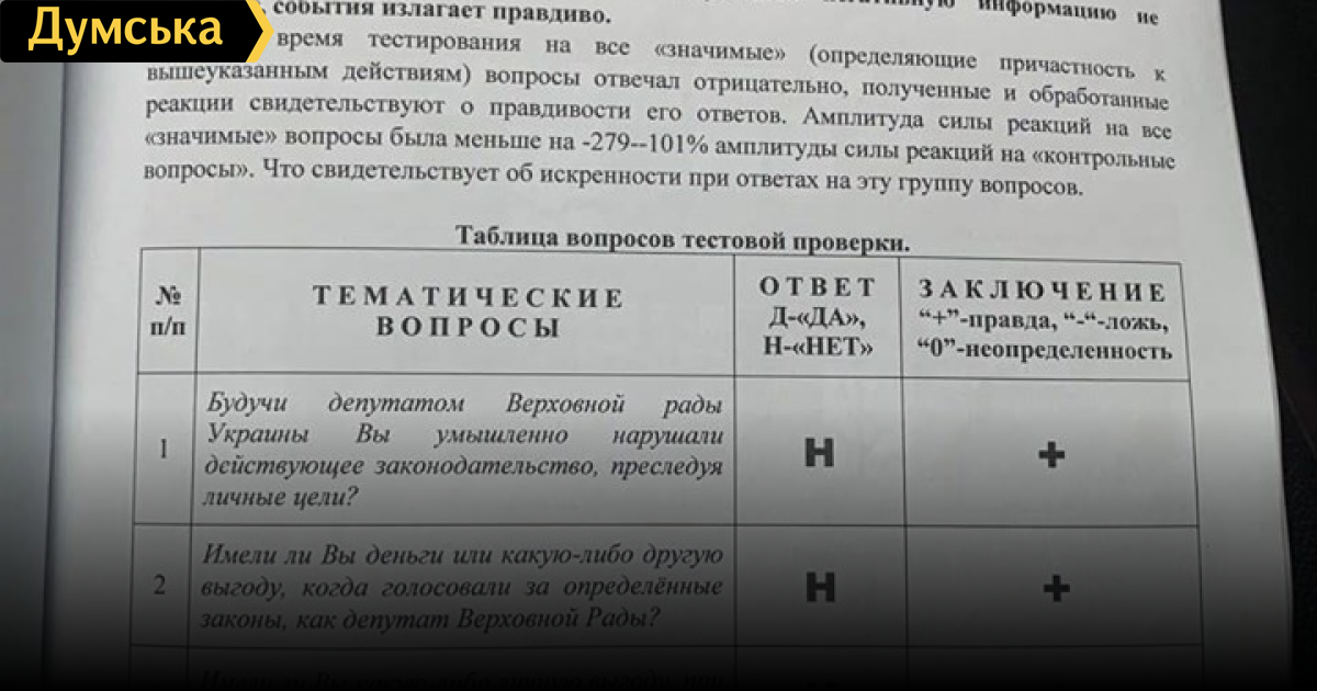 Одесский «слуга народа» прошел детектор лжи у полиграфолога, «специализирующегося» на политикахВероятный кандидат в мэры Одессы и действующий народный депутат от партии «Слуга народа» Алексей Леонов, фигурирующий в коррупционном скандале, прошел проверку на полиграфе у специалиста, который ранее участвовал в избирательных кампаниях. Полиграфист констатировал, что все ответы нардепа были правдивыми. Таким образом, Леонов хотел доказать, что умышленно не нарушал законы в личных целях, не получал деньги или другую выгоду за работу в финансовом комитете Рады, а также не лоббировал чьи-либо интересы. Напомним, Леонова и десять его коллег из партии «Слуга народа» обвинили в получении 30 тысяч долларов за срыв голосования за антикоррупционный закон, избавляющий людей от лишних трат при продаже недвижимости. Тестирование одесского политика проводил полиграфолог Леонид Гаевский, который руководит так называемым «Центром детекции лжи». Ранее этот специалист, на сайте которого выложено лишь свидетельство о краткосрочном повышении квалификации, проверял на полиграфе «достоверность политических обещаний и морально-психологический облик» ряда кандидатов в народные депутаты, в частности Вадима Черного. Примечательно, что сам Гаевский раскритиковал «тестирование с элементами шоу» и критично оценил процедуру проверки других народных депутатов, которую проводили его коллеги. На вопрос журналистов в эфире NEWSONE он заявил, что во время детекции должны полностью отсутствовать какие-либо раздражители, в том числе видеокамеры. «Я работал с телеканалами и объяснял, что проверка может иметь ориентировочно какой-то результат. А говорить, что она проведена по всем требованиям, по всей строгости — это все равно, что брать кровь из пальца, не протерев спиртом или антисептиком этот палец Сказать, что на основании этой проверки можно делать какие-либо выводы, наверное нельзя», — заявил полиграфолог. Гаевский озвучил примерную стоимость проверки на детекторе лжи — от тысячи до 8 тыс. гривен. СМЕРТЬ РОСІЙСЬКИМ ОКУПАНТАМ! Помітили помилку? Виділяйте слова з помилкою та натискайте control-enter