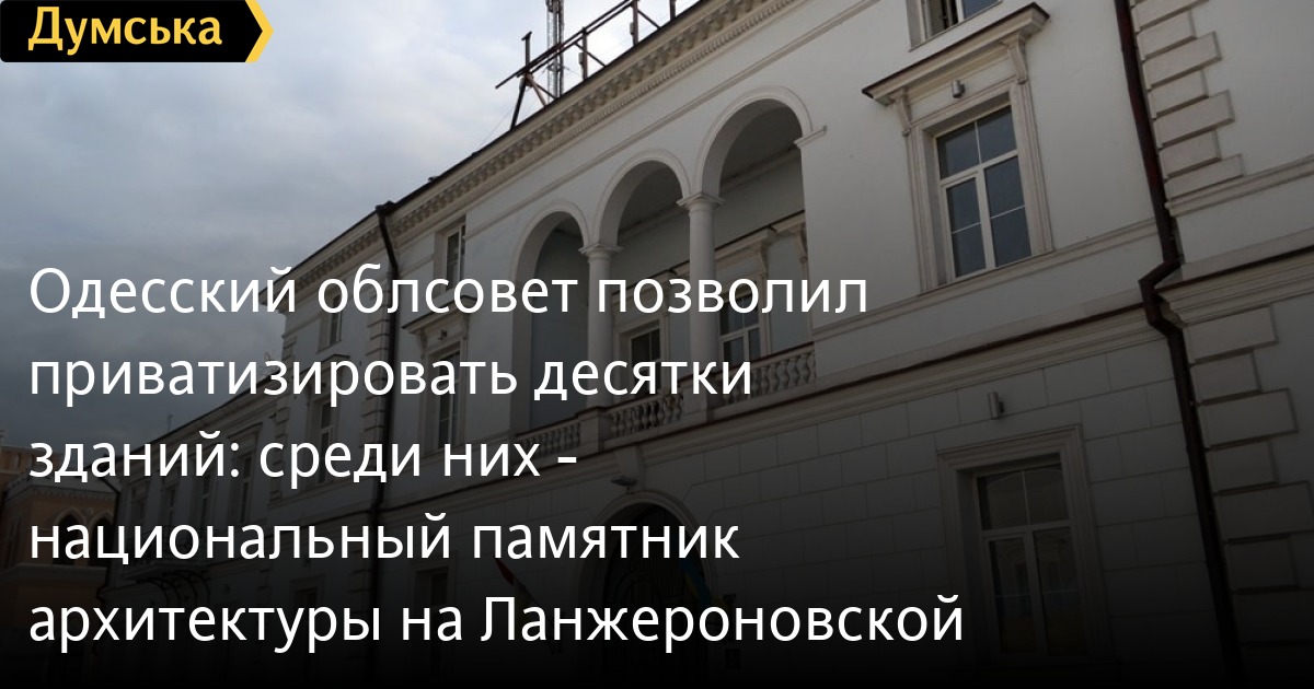 Депутаты Одесского облсовета позволили выкупить арендаторам десятки зданий и помещений, которые являются совместной собственностью громад региона.