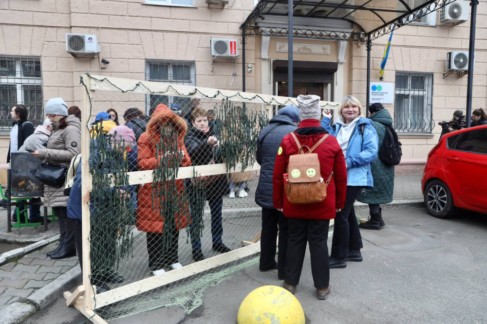 Перед будівлею на Семінарській, 5 люди плели сітки й чекали, коли на діалог із ними вийдуть представники Податкової служби, яка й отримала їхні приміщення у видавництві «Чорномор'я», передає кореспондент «Думської».