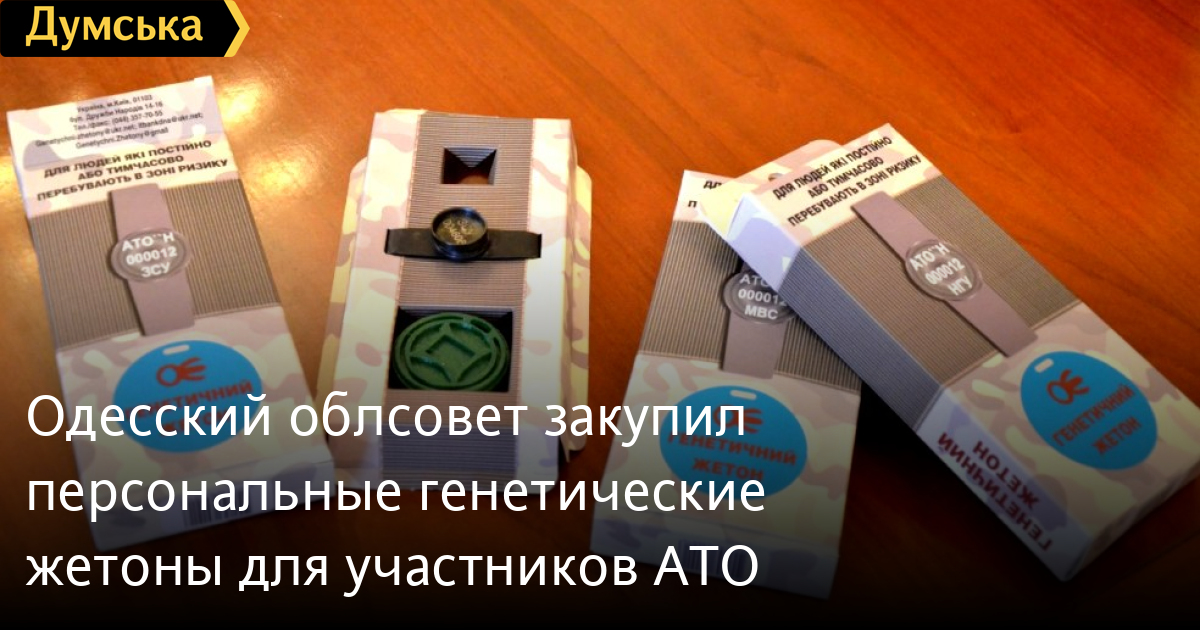 Полторы тысячи персональных «генетических» жетонов для участников антитеррористической операции закупил Одесский областной совет. Их получили военнослужащие частей Национальной гвардии, Вооруженных сил Украины и полицейские.