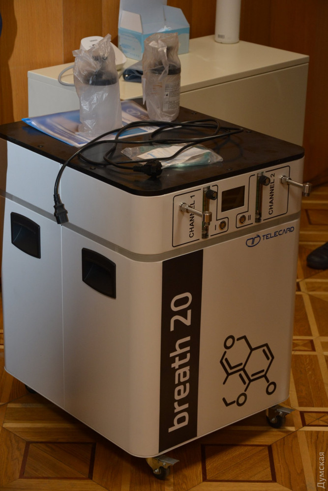 Концентратор — это электрическое устройство, которое позволяет получать кислород с помощью фильтрации воздуха. Мощность прибора — 20 литров в минуту, а подсоединить к нему можно от одного до четырех пациентов. «Бриз-20» производит кислород с концентрацией 95%, что соответствует международным стандартам. Работать без остановки прибор может до десяти суток.