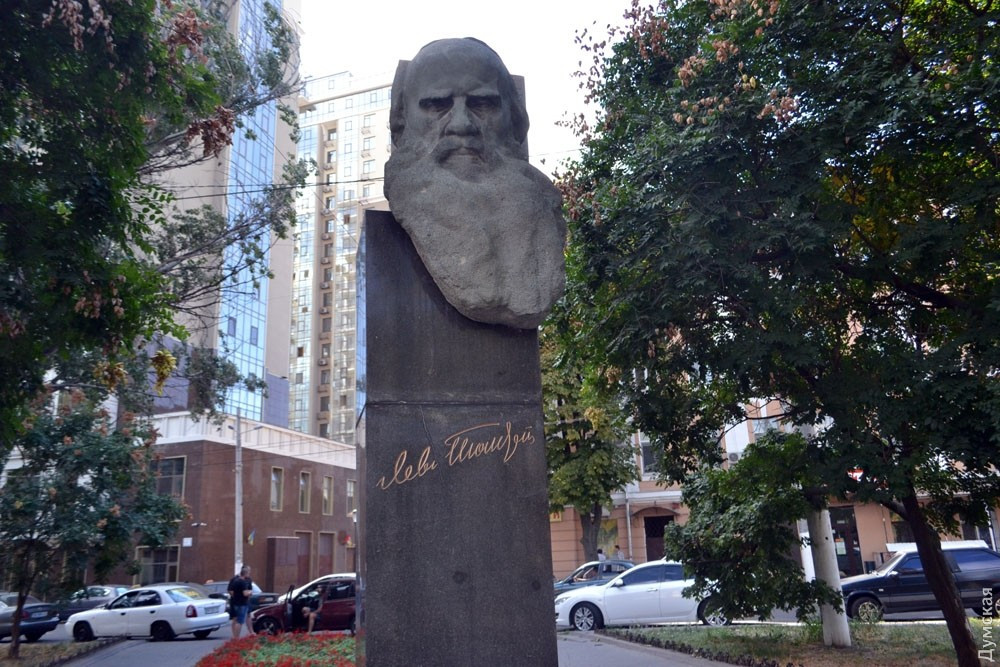 Зазначимо, що Толстого з Одесою нічого не пов'язує: письменник був тут лише раз, проїздом, 1854 року. Однак його ім'я носить вулиця і площа, на якій 9 вересня 1968 року встановили погруддя літератора.