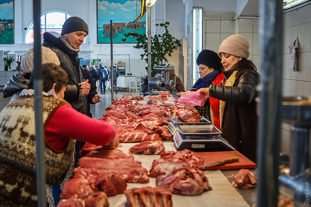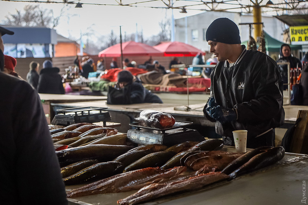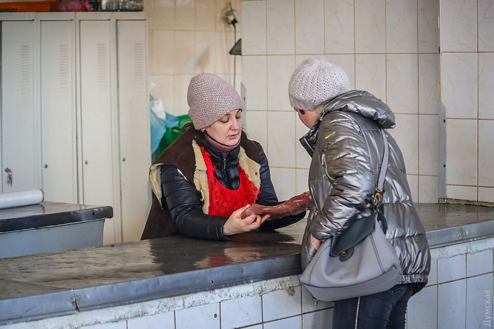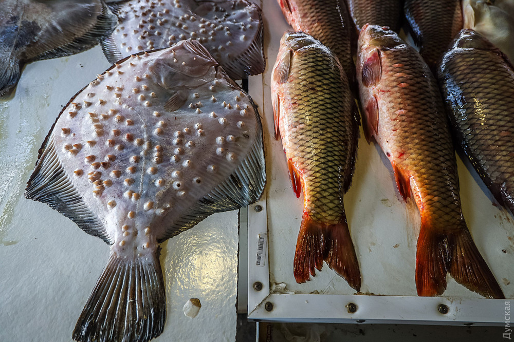 Хорошую домашнюю свинину можно сторговать за 120 гривен за кг, карп — от 70 до 90, большой судак идет по 120 гривен, есть даже камбала — по 450 гривен.