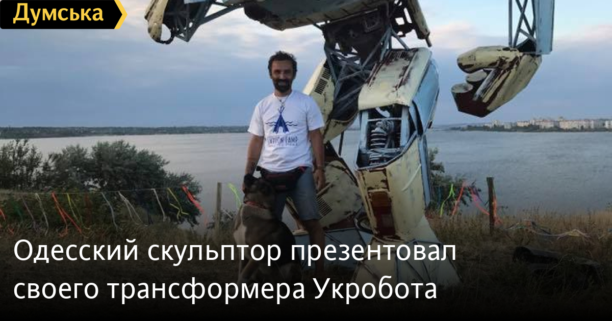 Одессит Александр Милов, известный огромными композициями из труб, в рамках фестиваля традиций FEST MRII под Николаевом представил публике новый арт-объект — четырехметрового Укробота. Работу над скульптурой, собранной из двух «Запорожцев», Милов начал еще в прошлом году. «Есть легенда о том, что все великие мира сего родом из Одессы. По крайней мере у них есть одесские корни – там бабушки, дедушки. Мы решили на эту тему и пошутить, сделали дедушку Бамблби, главного трансформера из сериала про трансформеров. Легенда такова, что они оказались здесь еще до зарождения планеты и были первыми протоукраинцами. В общем, это одесский дедушка Бамблби. Будет еще бабушка», — отметил автор. Фото — facebook, Alexandr Milov