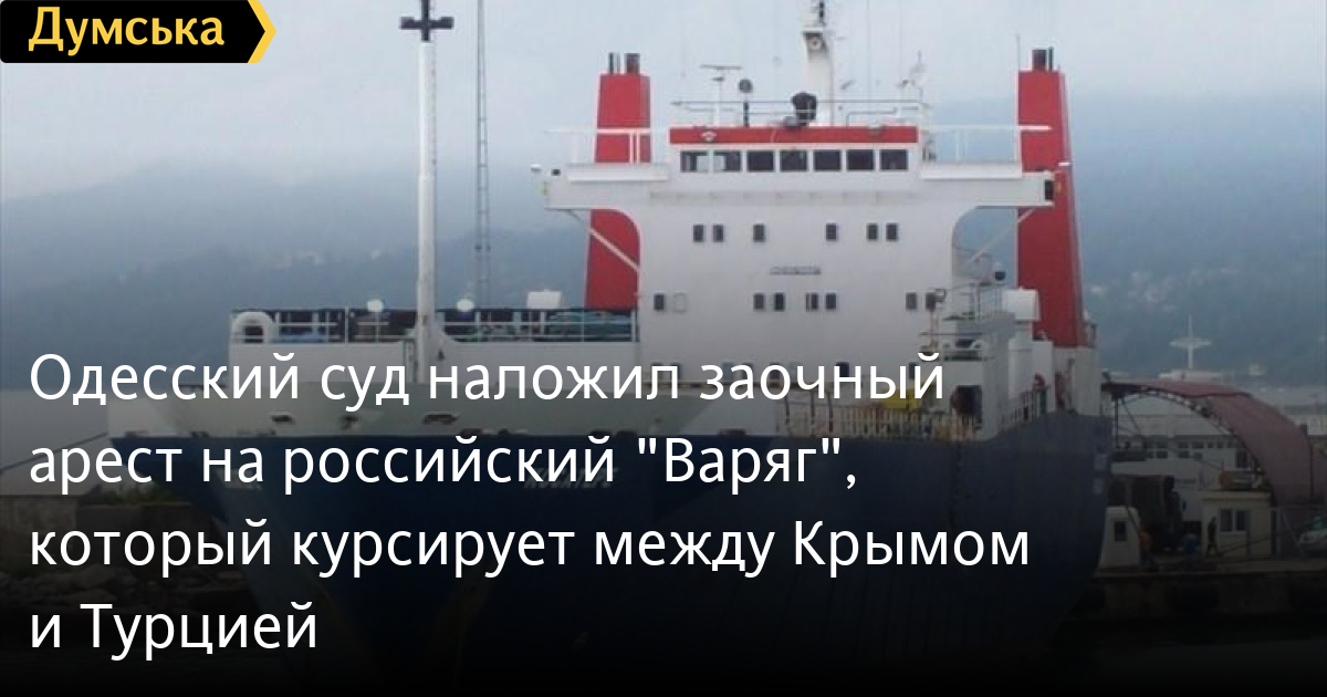 Приморский районный суд Одессы удовлетворил ходатайство военной прокуратуры Одесского гарнизона и наложил арест на паром «VARYAG» (флаг Панамы), который курсирует между оккупированным Севастополем и турецким портом Зонгулдак.