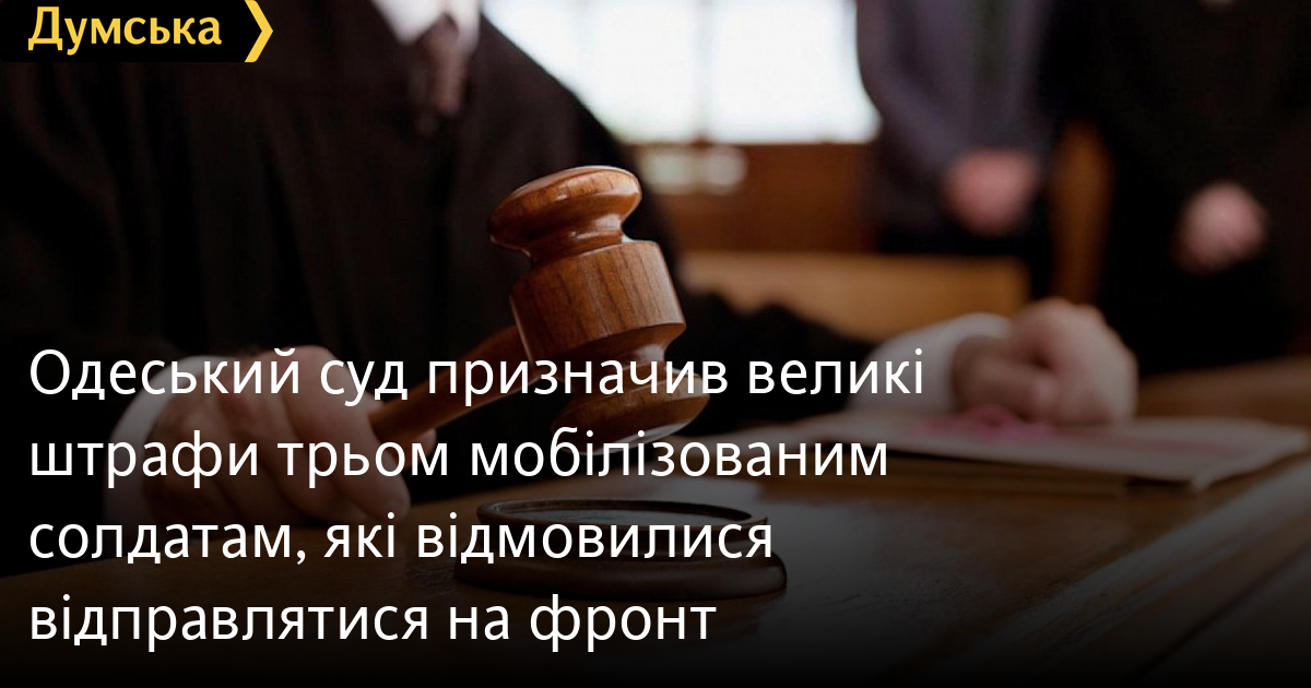 Великі штрафи призначив Київський районний суд Одеси трьом військовослужбовцям, які були мобілізовані до лав Збройних сил України після початку повномасштабного вторгнення нацистської росії, але відмовилися прямувати на передову.
