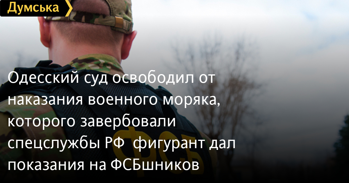 Приморский райсуд Одессы вынес приговор военнослужащему Военно-морских сил Украины по ч.1 ст.14 и ч.1 ст. 111 УК Украины (приготовление к государственной измене). Фигуранту грозило от 12 до 15 лет тюрьмы, но его освободили от наказания, поскольку подсудимый дал показания на сотрудников ФСБ, которые его завербовали.