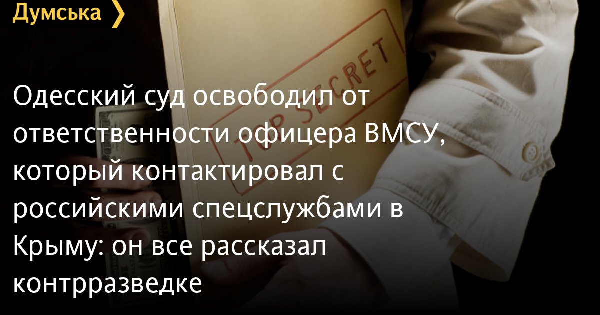 Приморский районный суд Одессы освободил офицера Военно-морских сил Украины от ответственности за государственную измену.