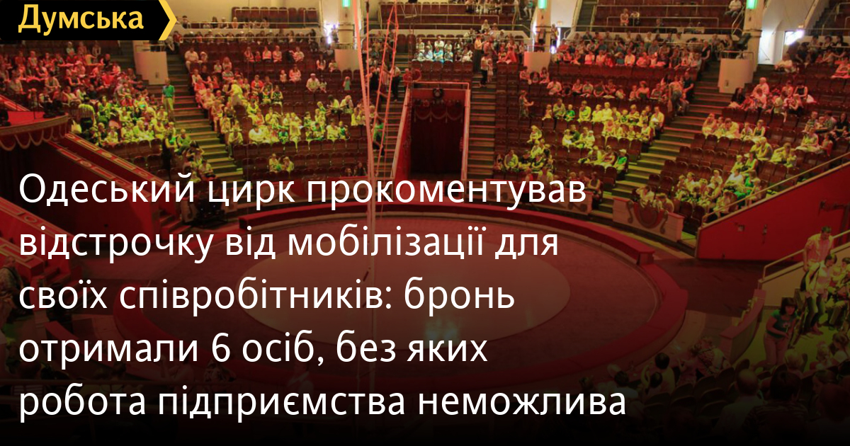 Одеський цирк прокоментував відстрочку від мобілізації для своїх співробітників: бронь отримали 6 осіб, без яких робота підприємства неможливаВідстрочку від мобілізації отримали шестеро співробітників Одеського цирку, без яких його функціонування неможливе. Про це йдеться в офіційній заяві, з якою Одеський цирк виступив після того, як стало відомо, що підприємство визнали критично важливим для життя країни, а його працівники отримали бронь. «Державне підприємство «Одеський державний цирк» від початку повномасштабного вторгнення військ Російської Федерації продовжувало виконання своїх функцій, визначених Статутом, і визнане державою критично важливим. Підприємство щорічно відповідно до постанови КМУ від 27.01.2023 №76 підтверджує свій статус критично важливого для функціонування економіки та населення. Наразі циркові вистави для населення регіону проводяться, що своєю чергою задовольняє культурні потреби громадян південного регіону. ДП «Одеський державний цирк» із загальної кількості 114 штатних одиниць працівників подало на бронювання лише 6 осіб, які відповідають обліковим даним військовозобов'язаних. Без відповідних працівників робота підприємства неможлива», — сказано в заяві. В Одеському цирку також розповіли про DDOS-атаку на сервери компанії Thehost, де розташований сайт підприємства. Вона сталася вранці 9 квітня. «Зазначена атака свідчить про цілеспрямовану акцію проросійських агентів для дестабілізації роботи підприємства та негативного ставлення населення», — зазначили в Одеському цирку. СМЕРТЬ РОСІЙСЬКИМ ОКУПАНТАМ! Помітили помилку? Виділяйте слова з помилкою та натискайте control-enter |
