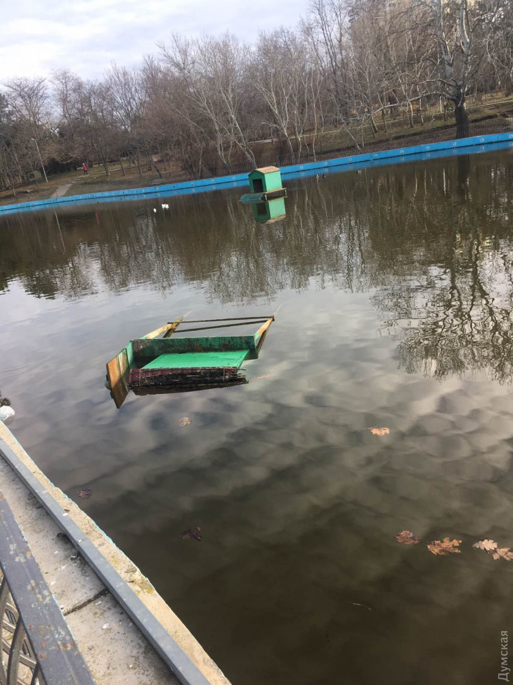 Всего на прудах установлены пять домиков, в которых спят и высиживают птенцов утки и лебеди. Стихия уничтожила два из них. Пара лебедей, которая живет в парке уже несколько лет, во время урагана не пострадала — их отправили в зоопарк до весны, а вот уткам повезло гораздо меньше.