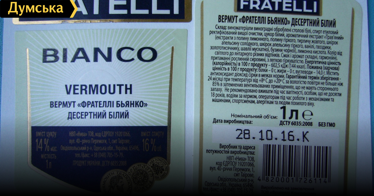 Как сообщили в пресс-центре АМКУ, предприятие наказали за изготовление вермута Fratelli Bianko, внешне похожего на итальянский вермут Martini Bianсo.