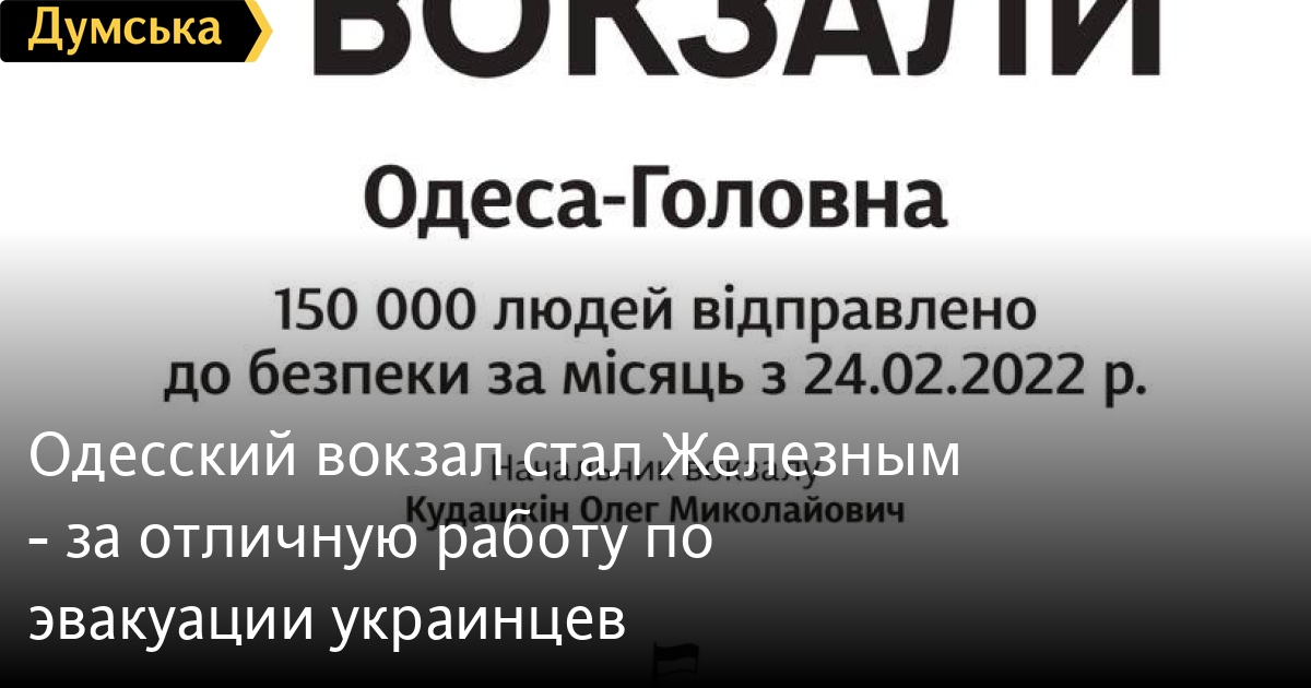 Одесский и еще девять железнодорожных вокзалов страны получили знак отличия за работу по эвакуации граждан Украины и иностранцев, которые бегут от ужасов войны. Как сообщили в «Укрзалізниці», отныне они будут Залізними Вокзалами — о чем будет указано на специальной табличке возле дверей. С 24 февраля через одесский вокзал эвакуировали 150 тысяч человек. Всего украинская железная дорога перевезла 3,7 млн эвакуированных. «И эта цифра — не сухая статистика, а конкретные жизни детей, матерей, иностранных студентов, маломобильных и раненых, которые мы продолжаем спасать каждый день», — отмечают в пресс-службе «Укрзалізниці». Особая нагрузка пришлась на первый месяц, когда поездные бригады вывозили до 3000 человек на один поезд. Кроме одесского, отмечены вокзалы Киева, Харькова, Краматорска, Лимана, Запорожья, Днепра, Кривого Рога, Ужгорода, Львова. СМЕРТЬ РОСІЙСЬКИМ ОКУПАНТАМ! Помітили помилку? Виділяйте слова з помилкою та натискайте control-enter |