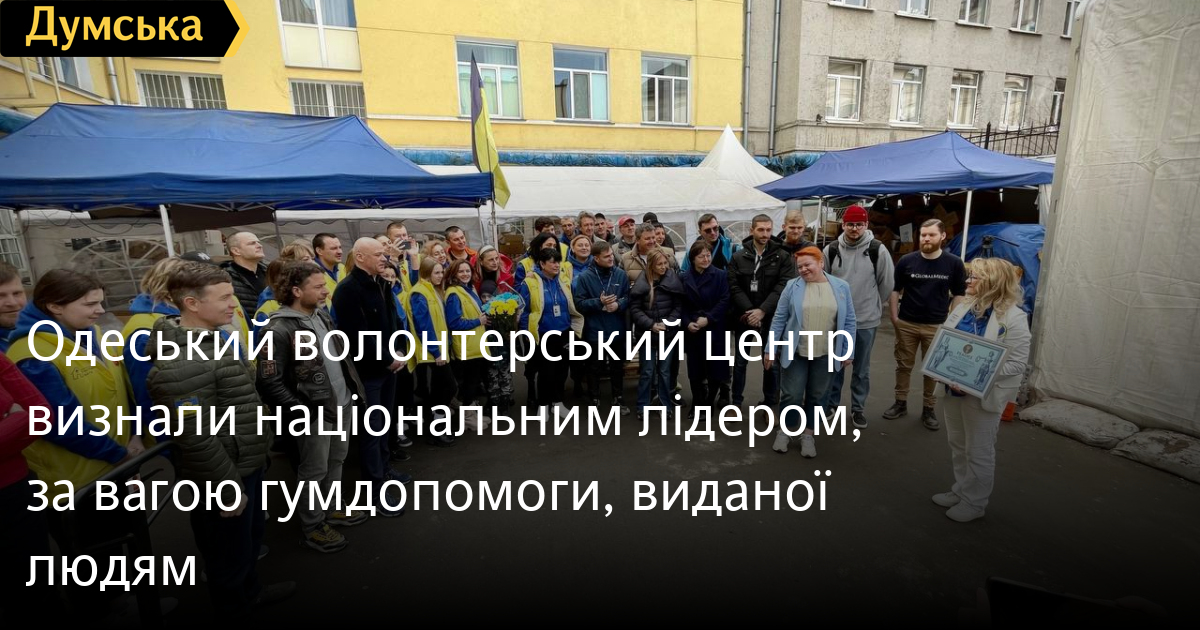 Одеський волонтерський центр визнали національним лідером, за вагою гумдопомоги, виданої людямОдеський гуманітарний центр включили до Національного реєстру рекордів України. «Гостинна хата» отримала нагороду за найбільшу вагу гуманітарної допомоги, виданої постраждалим від війни — 1 мільйон 80 кг, повідомили в муніципалітеті. Центр на Рішельєвській, в приміщенні 117 школи, існує вже майже рік. Участь в його роботі беруть місцева влада, разом із волонтерами, міжнародними донорами та небайдужими українцями. За час діяльності «Гостинна хата» в Приморському районі надала допомогу майже 150 тисячам людей. СМЕРТЬ РОСІЙСЬКИМ ОКУПАНТАМ! Помітили помилку? Виділяйте слова з помилкою та натискайте control-enter |