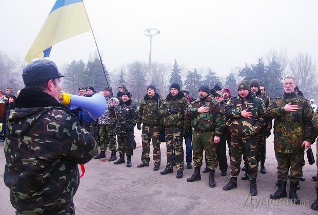 Сегодня, 7 декабря, на Куликовом поле в Одессе прошли сразу два митинга. К традиционно собирающимся здесь любителям России присоединились и сторонники единой Украиы, которые анонсировали проведение здесь своего мероприятия под названием «Одесское чаепитие».