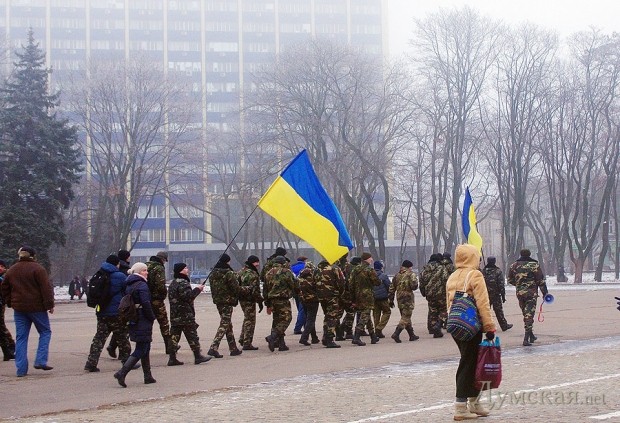 Как передает корреспондент «Думской», в назначенное время на Куликовом поле собралось около сотни проукраински настроенных горожан и примерно столько же их оппонентов. Они тут же начали осыпать друг друга оскорблениями.