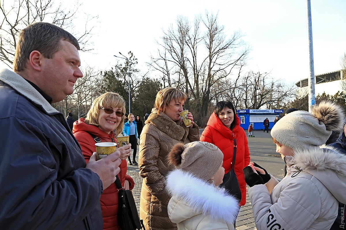 Как передает корреспондент «Думской», праздник в Ракушке начался около полудня и получил второе дыхание благодаря футбольному матчу на стадионе «Черноморец». Примерно сотня болельщиков, не разошедшихся по домам, остались праздновать заключительный день Широкой Масленицы.