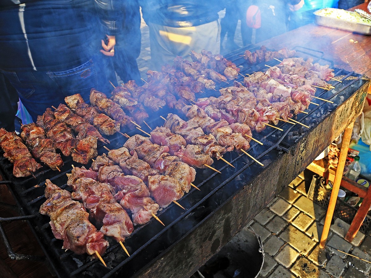 Пока брутальные исполнители заводили молодежь, повара фуд-корта разжигали угли для мясо-шашлычных яств. Острые запахи жареных деликатесов выстраивали длинные очереди вокруг лотков, а синий дым, струящийся из мангалов, разносился на многие сотни метров и гнал страждущих к Ракушке. С эстрады доносились частушки и народные песни, и публика, разгоряченная глинтвейном, кружилась в хороводе и пританцовывала.