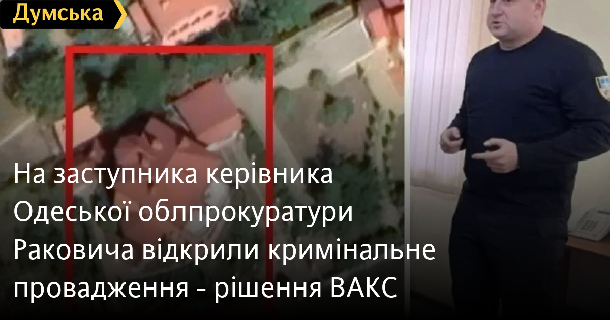 На заступника керівника Одеської облпрокуратури Раковича відкрили кримінальне провадження — рішення ВАКСЗаступник керівника прокуратури Одеської області Максим Ракович та його колишня дружина, а нині співмешканка Валентина Ракович, стали фігурантами кримінального провадження. Як пише агентство УНІАН, Вищий антикорупційний суд зобов’язав САП відкрити щодо них кримінальне провадження за статтями 368-5 КК України «Незаконне збагачення» та 366-2 КК України «Декларування недостовірної інформації». Мова йде про активи на чималу суму – понад 52 млн грн. Фрагмент рішення ВАКС. Скріншот з сайту УНІАН з посиланням на Єдиний державний реєстр судових рішень Справу відкрили після звернення до ВАКС громадської антикорупційної організації «Братерство захисників». Спершу представники ГО написали повідомлення про вчинення правопорушення до Спеціальної антикорупційної прокуратури, але там відмовився давати справі хід. Після цього, антикорупціонери подали позов вже до Вищого антикорупційного суду, і той повністю погодився з аргументами активістів, зобов’язавши САП відкрити кримінальне провадження. «Наявна реальна обґрунтована ймовірність того, що зазначені в заяві активи на суму орієнтовно 52 млн. 602 тис. 428 грн. були набуті за рахунок незаконних коштів, отриманих у період виконання заступником керівника Одеської обласної прокуратури функцій держави, а оформлені вони на близьких осіб прокурора лише для видимості (маскування). Зазначені обставини можуть свідчити про те, що прокурор як суб`єкт декларування та особа, уповноважена на виконання функції держави, вчинив кримінальні правопорушення, за які передбачена кримінальна відповідальність відповідно до ст. 368-5 КК України «Незаконне збагачення» та ст. 366-2 КК України «Декларування недостовірної інформації», — цитує УНІАН рішення ВАКС. Фрагмент решения ВАКС. Скриншот с сайта УНИАН со ссылкой на Единый государственный реестр судебных решений Як нагадує видання, те, що родина Раковичів може жити не за статками, наприкінці минулого року виявили ЗМІ. Так, у серпні 2023 матір прокурора оформила на себе будинок площею 274,5 кв.м у Санжійці Одеської області, розташований за кілька хвилин ходьби від узбережжя. Окрім того, тоді ж на неї було записано квартиру в Одесі, площею близько 100 кв.м. На його тещу у 2023 році було оформлено квартиру в Одесі площею 94,7 кв.м. Окрім того, у неї вже був будинок в м. Білгород-Дністровський і квартира 69 кв.м у ЖК «Французький» в Одесі. Маєток біля моря сім’ї Ракович. Колаж з сайту УНІАН з посиланням на stopcor.org та ТГ-канал Absolution «До речі раніше, у 2018 році, мати й батько заступника одеського облпрокурора зробили йому несподівані подарунки – по 650 тис. гривень кожен. Цікаво, що хоч після цього, у 2019 році Максим Ракович розлучився, формально, згідно декларації, вони весь час проживають разом. Більше того, коли пішов із життя батько Максима (до слова – він, як і його син, все життя пропрацював у органах прокуратури), то чималий спадок (7,4 млн грн та недешеву нерухомість) він залишив не сину, а його колишній дружині», — йдеться у повідомленні. Після рішення ВАКС спеціалізована прокуратура відкрила щодо Раковичів два окремі провадження — 42024000050000039 – за фактом набуття активів, вартість яких значно перевищує їх законні доходи, та 42024000050000040 – за фактами умисного внесення в декларації 