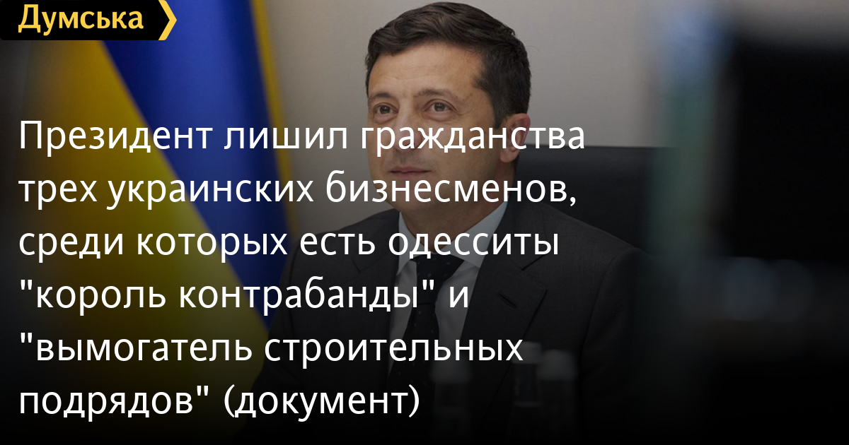 Трех фигурантов списка контрабандистов Совета национальной безопасности и обороны лишил гражданства Украины президент Владимир Зеленский.