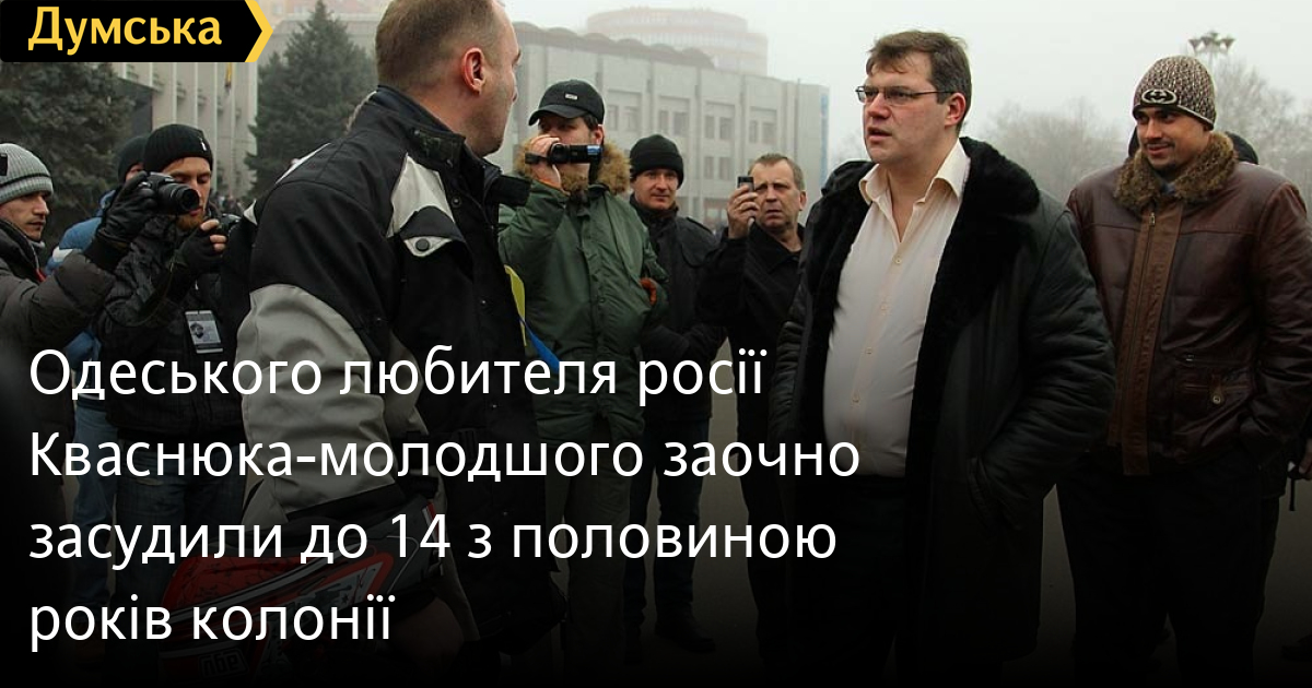 До 14 років і шести місяців позбавлення волі з конфіскацією всього майна заочно засудив Приморський районний суд Одеси відомого проросійського діяча Єгора Кваснюка — сина покійного телеведучого з такими ж поглядами.