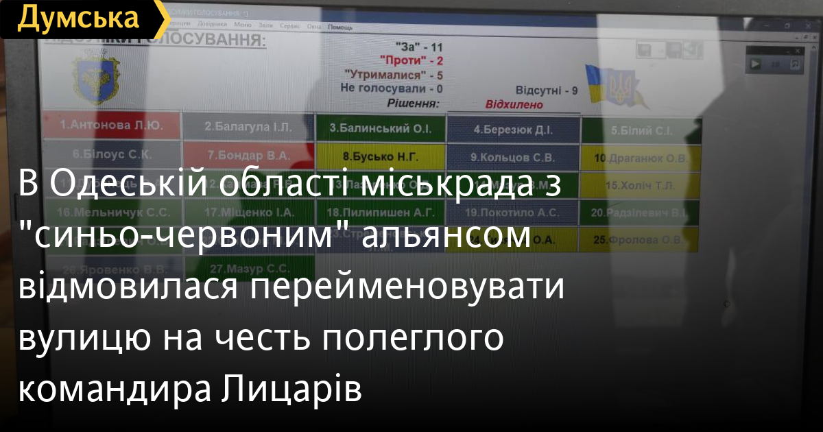 Балтська міська рада не змогла ухвалити рішення про перейменування вулиці Слави на честь полеглого влітку командира 28-ї окремої механізованої бригади імені Лицарів Зимового походу Віталія Гуляєва.